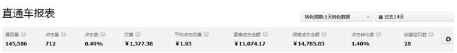1. 首先上一張最近直通車數據報表。 2. 以上為最近兩周的直通車數據,總計花費1377元,而直通車統計的銷售數據為:近26000元,四舍五入后。透出產入比達到1:20.這僅僅是數據中統計到的,對于如今我們店鋪來說,真實數據會趕超此比例。