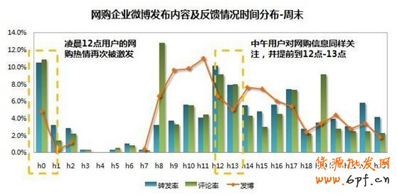 周四互動性最強:用戶在周四對于網購類微博的互動熱情尤為高漲,可能是受即將到來的周末的刺激。