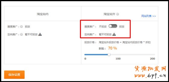 目前無法對單個推廣寶貝的關鍵詞或類目單獨設置站外投放的價格,但是可以在設置投放平臺的功能中,去調整一個推廣計劃內寶貝的站外投放出價比例。