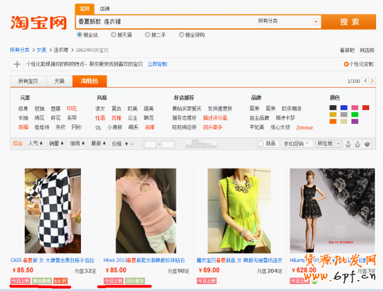 買家通常會表達他的意向,想要新款,或者新品,所以關鍵字里面會帶著 春夏新款 這個字,我們在淘寶首頁搜索條輸入 春夏新款 連衣裙 這個關鍵字,我們看看淘寶把我們帶入哪里: