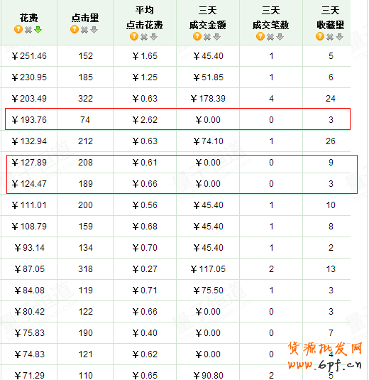 幾乎所有的寶貝都是ROI都不是太好。接下來,我們找到花費最高,影響最大的幾個寶貝查看關鍵詞的情況如何。