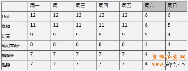 例如:按天均分產(chǎn)品:324/6=54(注:周末兩天均分),如圖