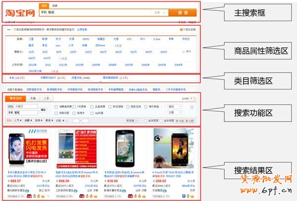 淘寶主搜結(jié)果頁主要包括以下模塊: