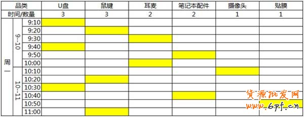 例如:按公式得出:60/(54/9)=10 最終得出本店產(chǎn)品上架間隔時間為:10分鐘
