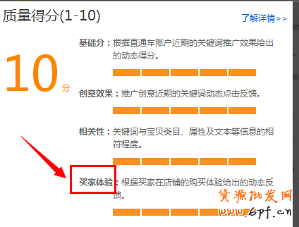 在影響質(zhì)量得分的層面上來說,賣家體驗(yàn)官方解釋是:根據(jù)買家在店鋪的購買體驗(yàn)給出的動(dòng)態(tài)反饋。在這個(gè)含義里面我們可以獲取到2個(gè)信息,其一,是買家的購買體驗(yàn)。其二,是一個(gè)動(dòng)態(tài)的反饋。延伸一點(diǎn)來說,或者說結(jié)合最新的影響質(zhì)量得分的四個(gè)影響因素一起來分析,創(chuàng)意效果和相關(guān)性含義很明顯。那么基礎(chǔ)分呢,根據(jù)賬戶近期關(guān)鍵詞推廣效果給出的動(dòng)態(tài)分。好了,矛盾出現(xiàn)了,基礎(chǔ)分和賣家體驗(yàn)一個(gè)是賬戶關(guān)鍵詞推廣效果,一個(gè)是買家購買體驗(yàn)。說的直白一點(diǎn),買家購買體驗(yàn)是通過什么去驗(yàn)證或者去判斷的呢?如果你作為直通車算法的程序員,你怎么去判斷這個(gè)買家通過直通車進(jìn)入你店鋪之后的體驗(yàn)較好?答案呼之欲出:轉(zhuǎn)化。那基礎(chǔ)分里面的關(guān)鍵詞推廣效果又是怎么一回事呢,很好理解,一個(gè)是初始分考慮因素,而一個(gè)是后期質(zhì)量分變化的因素。而他們最核心的區(qū)別則是:基礎(chǔ)分是當(dāng)給一個(gè)剛上的寶貝添加關(guān)鍵詞,推廣效果是指整個(gè)直通車賬戶的一個(gè)整體的推廣效果,包括轉(zhuǎn)化率,點(diǎn)擊率等。而買家體驗(yàn),它針對(duì)的是關(guān)鍵詞加到某個(gè)寶貝以后,該寶貝本身后期的一個(gè)點(diǎn)擊反饋,不僅僅只是轉(zhuǎn)化一個(gè)因素,還包含點(diǎn)擊收藏和點(diǎn)擊加購物車等維度。