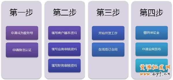 雖然此次微信支付只對微信公眾賬號中的服務賬號開放,但這也給看準微信營銷的商家帶來了一絲曙光。據了解,申請微信支付,需要填寫商戶基本資料、業務基本資料、財務審核資料。通過審核了的商戶才能進入開發流程,通過開發接口文檔的指引,完成開發。此后簽訂合同并繳納保證金后,申請全網發布,即可開通微信支付能力。