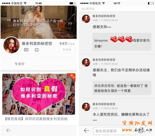 微淘平臺的互動性很好的彌補了這一不足。代購賣家“維多利亞的秘密控”通過微淘這個兼具社區(qū)性質的平臺,則緩解了自己遭遇的信任危機。通過微淘發(fā)布了商品或活動后,再多留言消息,該賬號也會盡量回帖答復,保持一個非常好的互動水平。讓一群喜愛海外代購產品的買家聚在一起,分享關注海外代購的所有資訊,潛移默化地增加了粉絲們的忠誠度和信任感,也免除眾多買家面臨PC端搜索迷茫的煩惱,轉化率提高了不少。