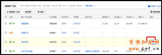 入口二:在屏幕首頁下方確定目標計劃,點擊計劃右方的編輯按鈕,找到“新建寶貝推廣 ”