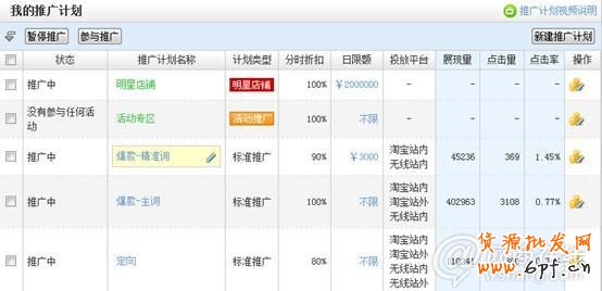 由上圖可以清楚看出,推廣計劃設定很清晰,泛詞和精準詞,定向計劃單獨分開做,主要是因為點擊率相互獨立,各不影響,點擊率的高低跟質(zhì)量得分密切相關。另外對于不同用處的關鍵詞可以分別通過計劃管理,有針對性的設置投放時間投放區(qū)域等。定向計劃可以通過時間和人群的單獨設置更快的被抓取入池。另外定向的流量偶爾會不穩(wěn)定,可以通過單獨的設置日限額和投放時間來進行控制。并且不會影響到關鍵詞的正常投放。如何提升點擊率?除了把精準詞單獨挑出來之外還有做不同的推廣圖片進行測試,選出最適合這款寶貝推廣的圖片。
