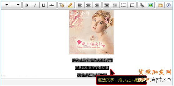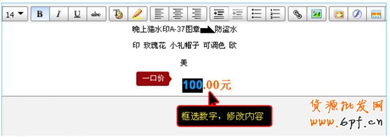 第六步,修改好圖片后,我們就可以直接在模板編輯的頁面修改對應寶貝的文字以及價格了。