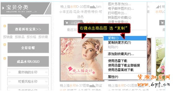 第二步,選擇你要放在模板上的寶貝,然后通過右擊復制寶貝的圖片。