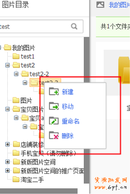 (2) 系統文件夾:寶貝圖片、店鋪裝修,由于是為圖片搬家使用,所以不支持用戶進行編輯操作(刪除、重命名);