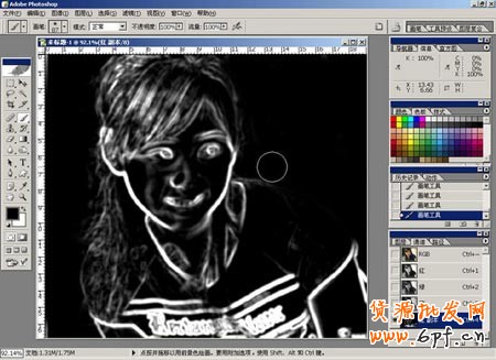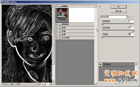 1、激活通道面板,觀察RGB三個通道,發現紅色通道中的信息比較豐富,質量較高,決定用紅色通道工作。復制紅色通道為紅色通道副本。執行濾鏡-風格化-照亮邊緣,參數如圖