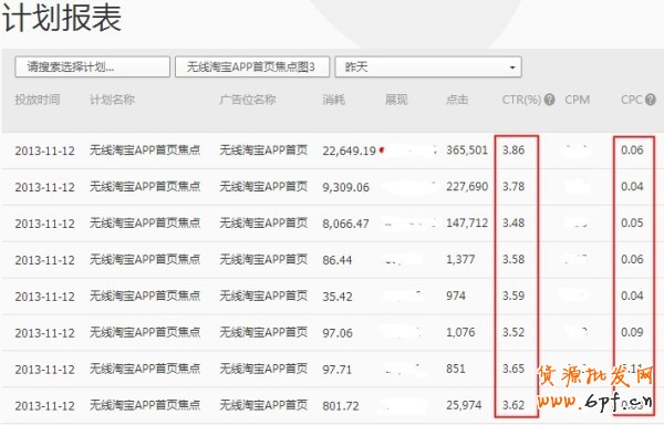 雖然無線時代的顛覆性還未得到完美呈現,但隨著它發展的日趨成熟,我們已經無法忽略它了。鉆石展位為淘寶掌柜考慮,定期上線無線端資源位。無線端資源位是鉆展的另一個藍海,目前已經上線的無線資源位有無線淘寶APP首頁焦點圖3、無線淘寶站內觸摸版新首焦3、無線淘寶熱賣觸摸版首焦1、2、3。這些資源位雖然上線不久,但是都有令人驚喜的表現,整體ctr在2%以上,cpc不到5毛。(注:ctr,是點擊率。點擊率=點擊量/展現次數;cpc,是點擊單價。點擊單價=投放成本/點擊量)