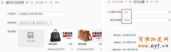 無線淘寶app首頁焦點圖3投放途徑:鉆展后臺選擇入口標簽--無線淘寶