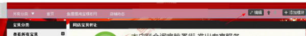 (一)首先登錄淘寶,進入淘寶店鋪裝修后臺首頁的“頁面編輯”模式下,鼠標放到導航條上,然后單擊右側的“編輯”按鈕