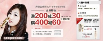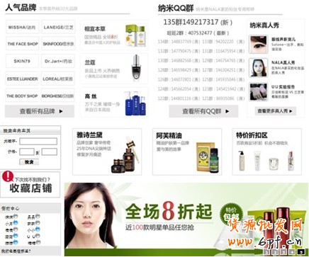 熱賣品牌、店鋪會員會員群、一般性促銷展示信息展示。促銷信息這里用的是輪播圖的形式,符合人的眼睛對動態的東西或者有動態感的東西比較敏感的特性。需要注意的是,再次出現了“收藏”按鈕。由此可見回頭客對一家店鋪是多么重要。