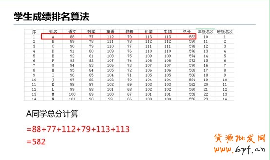 我們都知道,如果要將一個班級的學生成績進行排名,只需將學生的各科成績錄入EXCEL并相加就可以按降序得出。