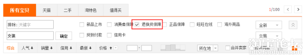 參加退貨承諾后,在前臺搜索時只要勾選“退換貨保障“,就會優先出現有打上退貨承諾標簽的賣家。
