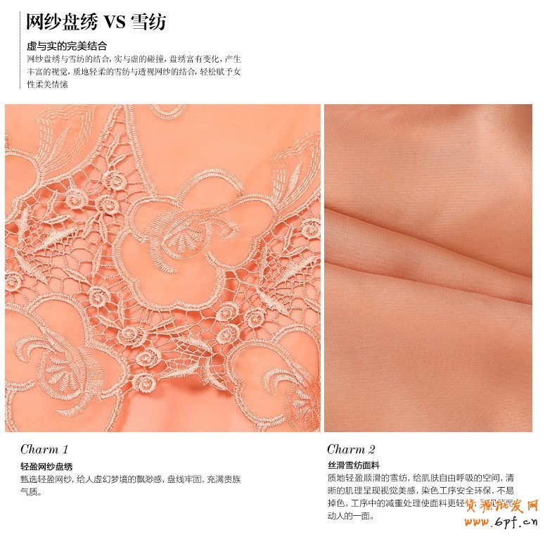 其次,在產品細節(jié)上,“精致繡花拼貼”、“飄逸荷葉邊”等產品亮點著實能吸引到消費者的眼球,同時,也加入了和一般雪紡衫的對比圖,深得消費者心理;