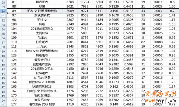 關鍵詞的使用還涉及到一個類目問題,比如“韓版”系統默認是連衣裙類目,你的寶貝如果是連衣裙可以搶,不是最好不要搶,雖然有客戶會點選出來需要的類目,(請大神提供統計方法),但還是順其自然吧,反應到我們做案例的這份詞表里,就是“針織衫”這個詞到底要不要選,以服飾常規知識來判斷,針織衫和毛衣是兩個品類,代表客戶的兩種不同需求,我們先看看