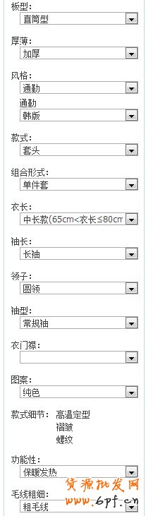我以現在正在進入旺季的女裝“毛衣”類目為例,這是這款寶貝的主要屬性: