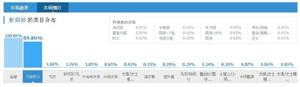 雖然“針織衫”這個詞的首要展現類目并不是毛衣,但在過去一周的詞表數據里,“針織衫”在毛衣類目下仍然有搜索成交(轉化率不為0),所以我們仍然是可以使用的,至于具體成交的流量入口在哪里,我個人認為就是搜索“針織衫”的顧客,通過條件篩選進了毛衣類目后找到寶貝并成交的,如果有派友有不同看法,還請分享出來賜教。