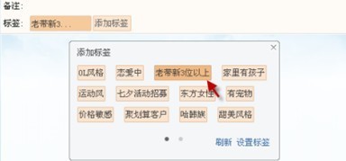 第二步,添加標簽。進行完第一步操作后,這個新加標簽就會出現在客服旺旺界面中。當買家參與活動,即可在旺旺中選擇為該買家打上“七夕活動招募”的標簽。