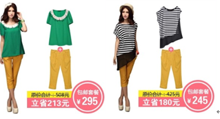 2)搭配套餐的價格折扣需要高于天天特價活動寶貝的折扣,就是說,套餐一口價與套餐內寶貝原價之和的比值需要大于參加天天特價活動的單品的活動價格與寶貝原價的比值;
