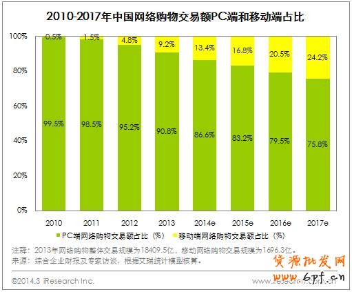 中國網絡購物行業PC端增速放緩,移動端爆發