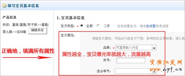 (3)類目排名優化:淘寶網首頁每個類目都很精細,這就要求我們在發布寶貝的時候,把所有屬性都正確地填滿,這樣可以增加在類目搜索中的爆光率。如下圖: