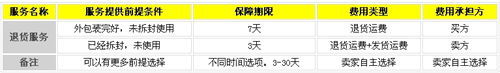 服務(wù)承諾約定,即賣家在退貨、換貨、維修等方面與買家做出約定。雖然淘寶目前已有“7天無理由退換貨服務(wù)”和“30天維修服務(wù)”,但這些服務(wù)已無法滿足用戶更多樣化的需求,比如賣家對(duì)退換貨服務(wù)能提供的天數(shù)、影響二次銷售的條件等的特殊需求。目前服務(wù)承諾內(nèi)容設(shè)置仍在征集意見階段,賣家可結(jié)合自身需求,給出合理建議和補(bǔ)充。