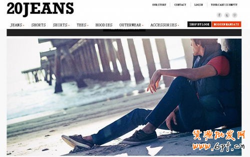 20 Jeans面向的是18到30歲的男士,但意外的是,很多40甚至50歲的男人也是20 Jeans的用戶。工裝褲、卡其褲、襯衫、T裇、汗衫、外套、配件,網站提供很多種類的男裝產品。效果展示的模特來自一些地下的樂隊成員,每一張照片除了介紹衣服還會有樂隊簡介,比雜志上的照片更實效。
