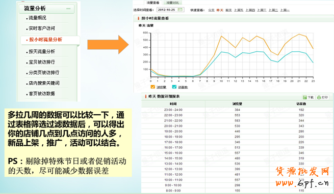 第二條線:分析自己店鋪的流量高峰時段,通過量子恒道里的【按小時流量分析】可以找到