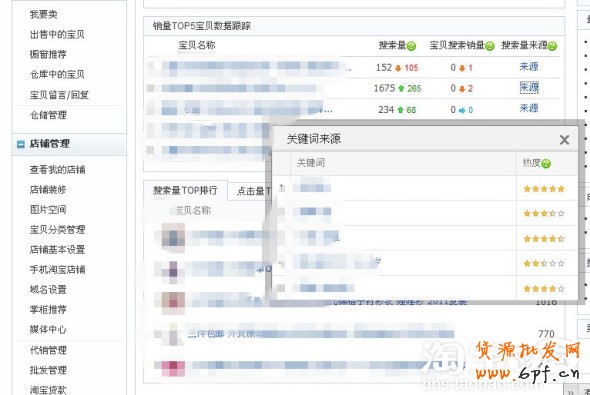 點(diǎn)擊圖中的“來源”,您就可以看到如下圖的界面,在您店里成交前五的寶貝的熱搜關(guān)鍵詞,如果這些關(guān)鍵詞有適合店里其他寶貝的,那么毫不猶豫的加進(jìn)去吧,這絕對(duì)有用哦。這個(gè)診斷助手的數(shù)據(jù)也是每天更新的,所以每天都要來看看哦。