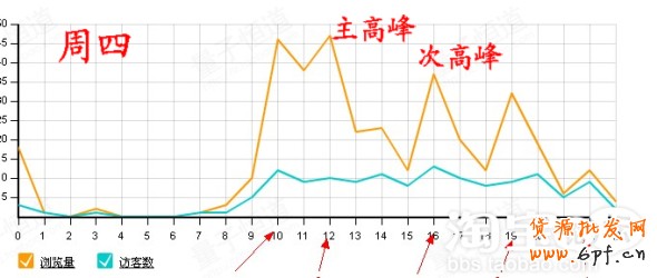 從圖中展現的情況來看,工作日的主高峰時段主要集中在中午12點-13點半的區間,而休息日則有所不同,可能變成晚上20點-21點的區間。每個店的產品不同,針對的客戶群體不同,購物的習慣時間可能也會有所差異,大家可以按照這個方法,找出自己店鋪每天的主高峰和次高峰時段,然后將寶貝的上架時間,集中設定到主高峰和次高峰時間之后1-2小時的時間點上。