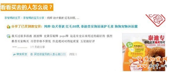 看完了店主的自吹自擂,這個時候就應該下一帖猛藥,就是客戶分享以及截取真實評價,增加看到這個頁面的狗狗主人的信息,別人用了都說好,對促進新客戶成交就更有推波助瀾的感覺。