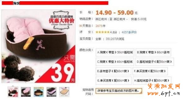 下圖是一個沐浴露和狗窩窩,沐浴露田田憑著48.9的高價力壓群雄,人氣第一名(商城除外);田田的窩窩39元依舊在這個有點溫熱的夏天賣出去2600筆,這是為什么?