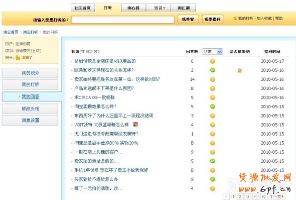 四,淘寶打聽。淘寶打聽里,每天都會(huì)有很多人到上面尋求幫助,這個(gè)時(shí)候,你就應(yīng)該利用自己所知道,所了解的知識(shí)去幫助這些朋友,從而增加曝光機(jī)會(huì)。我自己基本是每天都會(huì)去打聽里面回答一下問題,不管有沒有被采納,能回答就回答(這是跟回帖子一個(gè)道理的),如果被采納為最佳答案了,幫助別人的同時(shí),別人也會(huì)關(guān)注到你的店鋪,這些可都是潛在的顧客哦。現(xiàn)在我的打聽等級(jí)才到五級(jí),還有很多路要走,希望各位也一起加入!