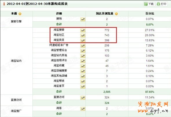 不難看出,流量來源的前三甲分別是:淘寶搜索、淘寶社區(qū)、淘寶類目。