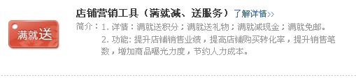 滿就送工具:滿就送是一個非常實(shí)用有效的工具,對于提升客單價(jià)非常好。贈送雖然是我們免費(fèi)送給客戶的,但是我們會有一個條件,比如要消費(fèi)滿多少,滿多少筆,所以客戶想要你的贈品就會千方百計(jì)的買夠你規(guī)定的數(shù)額。現(xiàn)在大多數(shù)客戶如果你不給他直接的優(yōu)惠,他是不買賬的,比如送他券,但抵價(jià)券是要下次用的,所以他寧可你給他降價(jià)或者送他一個贈品,這種活動是受買家歡迎的