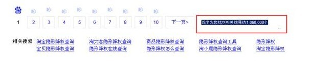 首先百度上輸入:隱形降權查詢這幾個關鍵字,搜索出來會發現找到相關結果約1,060,000個