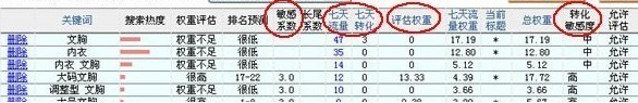 例如對于一款大碼文胸,大碼丶大胸是轉化敏感度高的,而文胸丶內衣是轉化敏感度中的。