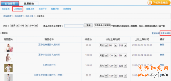7.上架計劃都制定好了之后,可以在查看排期表里面找到。點擊:自動助理→上架優化→查看排期表