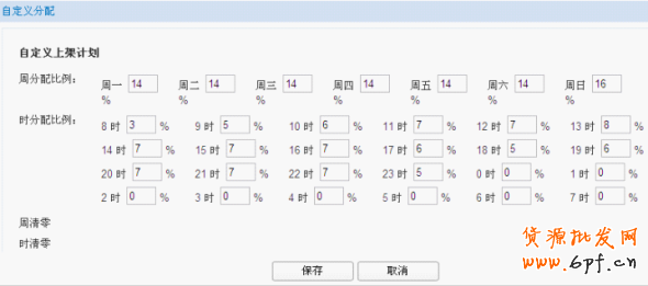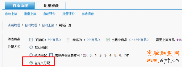 6.或者也可以選擇“自定義分配”,按照寶貝占比來設置上架時間。如下圖: