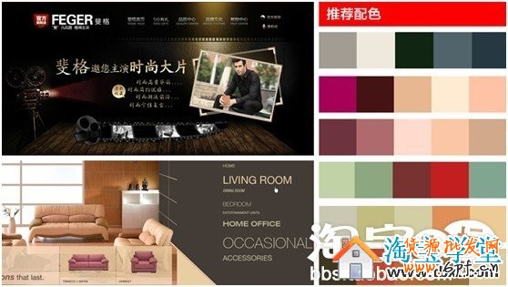 棕色和金色黑色搭配,會(huì)有高貴、經(jīng)典的沉淀感。這種配色方法,我們經(jīng)常可以在各種奢侈品站點(diǎn)和VIP平臺上看到;棕色和白色會(huì)讓人感覺更沉穩(wěn)莊重一些,產(chǎn)生相對舒適柔軟的感覺;而淡棕色和黃色、橙色搭配,會(huì)有比較生活化,也會(huì)有高端大牌的感覺。后面這兩種配色方式,適用于做家紡、家居搭配的賣家。