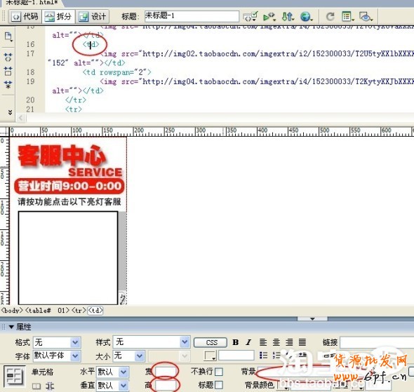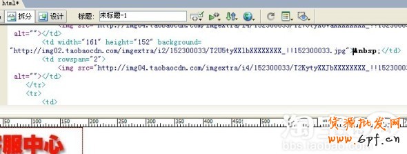 5個(gè)切片都更換完成后,再單擊這里。DW代碼區(qū)相應(yīng)的地址會藍(lán)底顯示,此時(shí)再單擊藍(lán)底代碼前的<td>