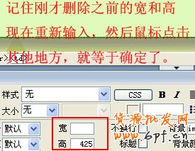 輸入尺寸 寬424 高425 ,然后鼠標點擊一下其他的圖就等于確認了,看是不是被我們刪除的圖又回來了,只不過它是作為背景回來的,我們可以在上邊寫字了,寫上幾個字用來做記號,比如輸入“插入內容”