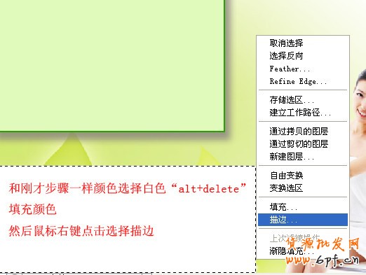 我們還要給這個框描邊,方法是:點擊鼠標右鍵,選擇描邊