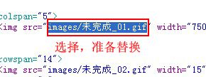 選擇需要替換的部分,也就是“images/未完成-x.gif”